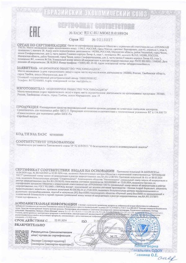 ШСС-Т самоспасатель для подземных работ полностью соответствует требованиям ГОСТ Р 53404-2009 и имеет все необходимые сертификаты качества и безопасности. Это гарантирует его эффективность и надежность в критических ситуациях.