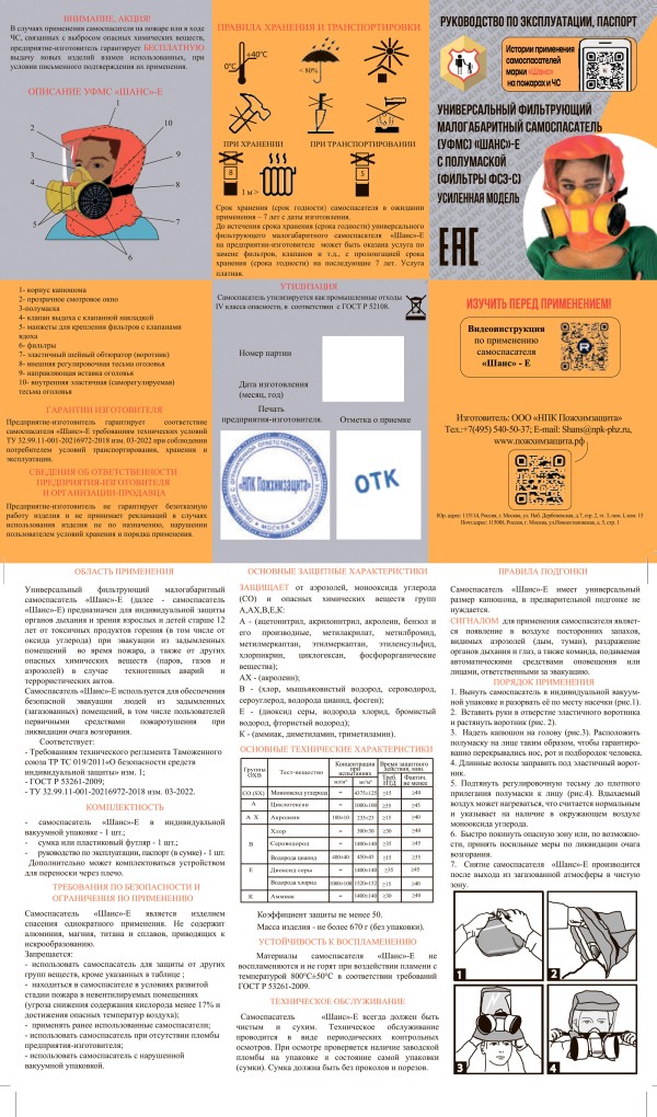 Самоспасатель (УФМС) «Шанс» -Е с полумаской (усиленная модель) - ТУ 32.99.11-001-20216972-2018